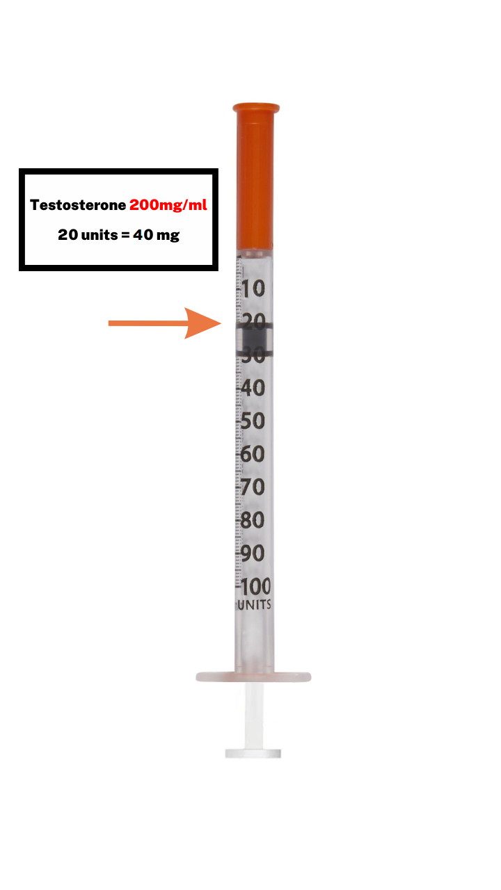 The syringes are measured units with 20 units = 0.2 mL. Each 0.2 mL = 40 mg of medication.