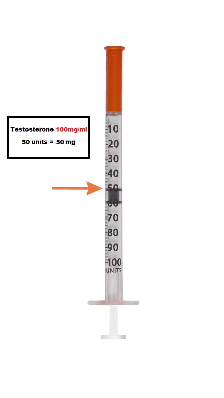 The syringes are measured units with 50 units = 0.50 mL. Each 0.50 mL = 50 mg of medication.