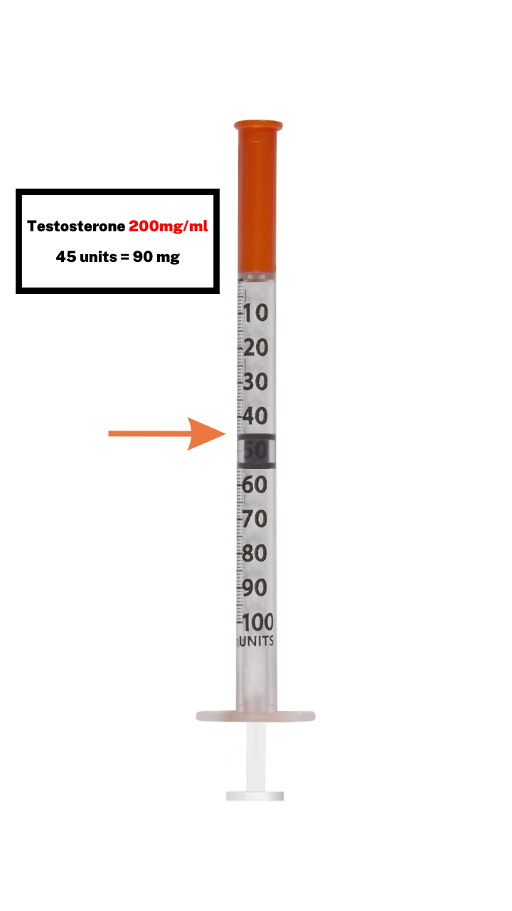 The syringes are measured units with 45 units = 0.45 mL. Each 0.45 mL = 90 mg of medication.